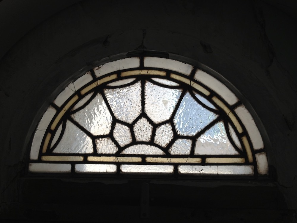 This small arched stained glass panel is to replace a broken one in a French farmhouse